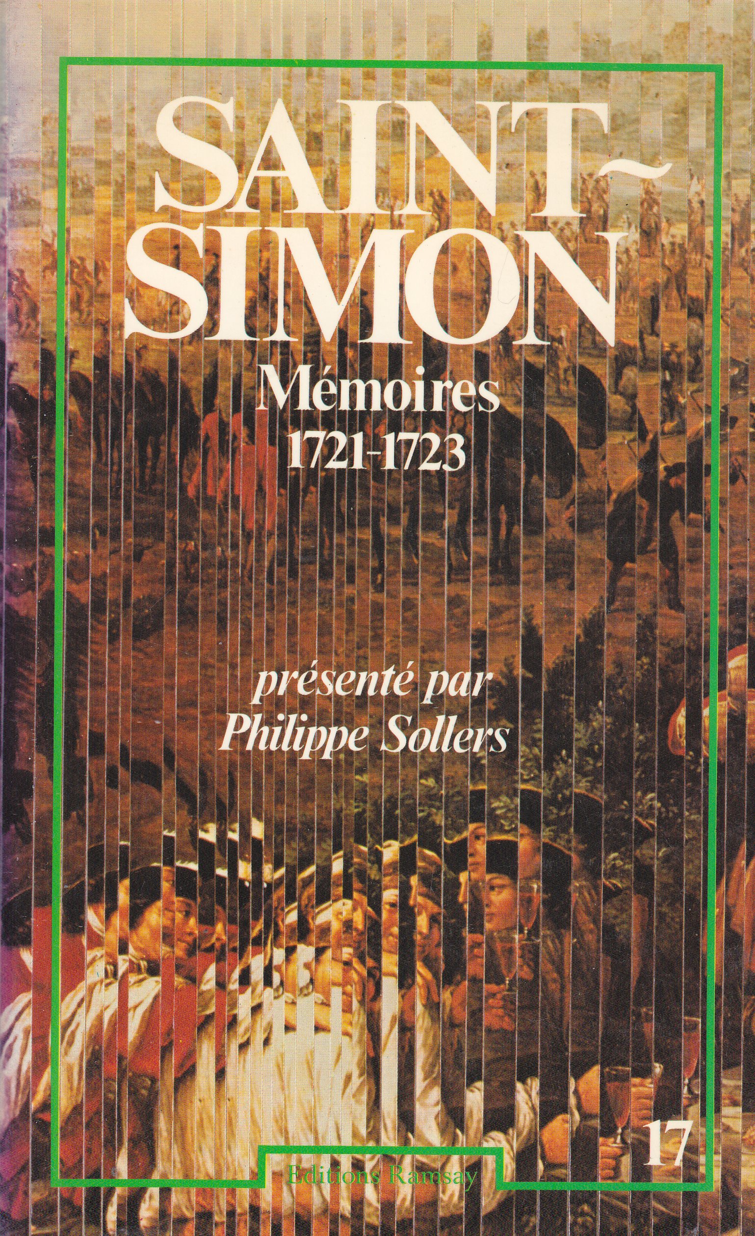«Il se levait assez tard à l'armée, se mettait sur sa chaise percée, y faisait ses lettres et y donnait ses ordres du matin. Qui avait affaire à lui, c'est-à-dire pour les officiers généraux et les gens distingués, c'était le temps de lui parler. Il avait accoutumé l'armée à cette infamie... C'était une simplicité de moeurs, selon lui, digne des premiers Romains, et qui condamnait tout le faste et le superflu des autres. Tout cela fini, il s'habillait, puis jouait gros jeu au piquet ou à l'hombre ; ou, s'il fallait absolument monter à cheval pour quelque chose, c'en était le temps. L'ordre donné au retour, tout était fini chez lui. Il soupait avec ses familiers largement : il était grand mangeur, d'une gourmandise extraordinaire, ne se connaissait à aucun mets, aimait fort le poisson, et mieux le passé et souvent le puant, que le bon. La table se prolongeait en thèses, en disputes, et, par-dessus tout, louanges, éloges, hommages toute la journée et